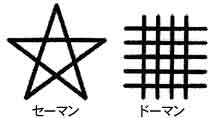 星型は一筆書きで元の位置に戻り、始めも終わりもないことから魔物の入り込む余地がなく、格子は多くの目で魔物を見張るといわれています。 | それがドーマン・セーマンです |