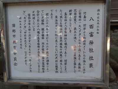 立て札に従い竜神岬へ向かう事にしました。ホテイチクのはやしがあったり、大きなタブノキがそびえたっています。
