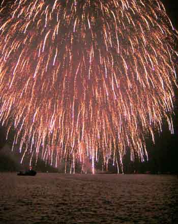 最大の呼物はなんといっても鳥羽湾における海上花火の打ち上げです。