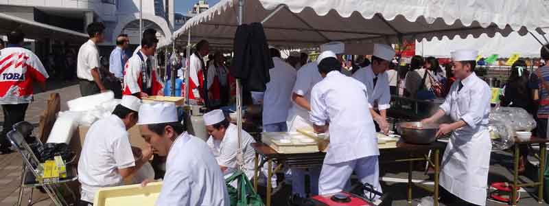 こちらは海鮮汁のふるまいの準備に追われる板前さんたち。何しろ1000食分だから大変です。