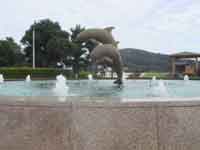 直ぐの信号を渡ると“ドルフィン広場”越しに海が見えます。