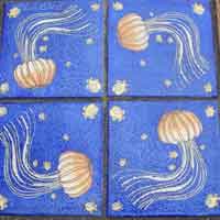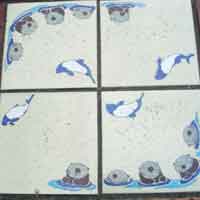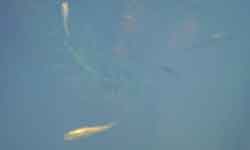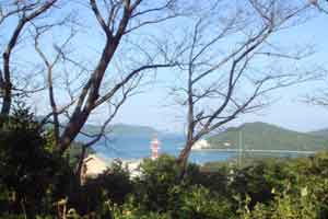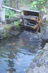 知らない道を歩くのは心細く、メダカの学校の案内板にほっとしました。 海が真っ青で、見晴らしの良い所です。 循環の庭とありますが、山水が水車により上手くメダカ池を次々と循環しています。 |