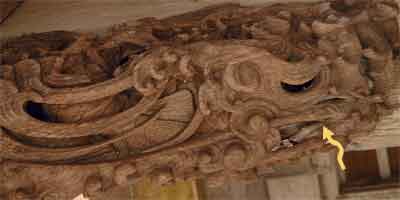 隠すように彫られていて、このイセエビを探すのは大変でした。まるで宝探しです。もしかしたらこの作者はこういう事を計算済みで、楽しみながら彫られてたのかも・・・職人の心意気とでも言おうか、粋な遊び心を感じました。