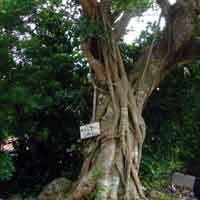 そろそろ「はいむるぶし」ともお別れ、外に出ると不思議な鳥が群れています。鴨の仲間で「バリケン」というそうです。ガジュマルはマングローブのように根っこをながーく伸ばしています。