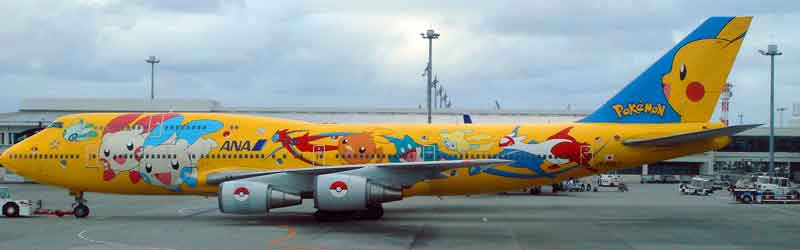 帰途那覇空港で見たピカチュウ飛行機、子供ならずとも大人だって結構写真撮影に走っていました。1機だけですが向きを変えたので写真は2枚。実に楽しい冒険に近い旅行でした。