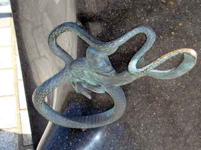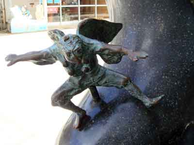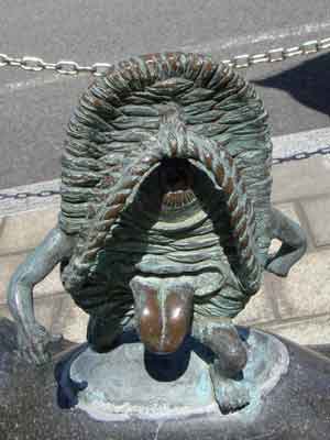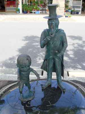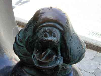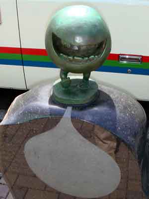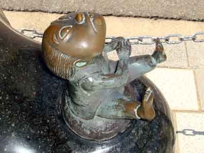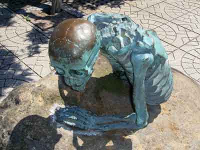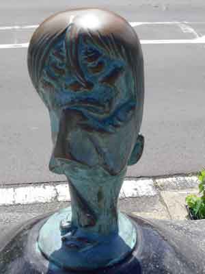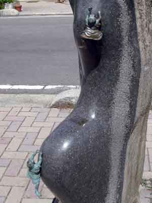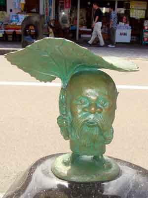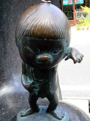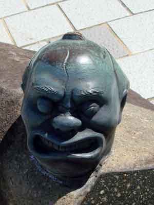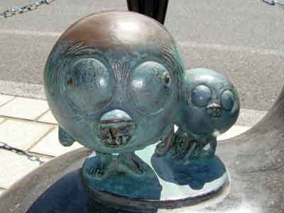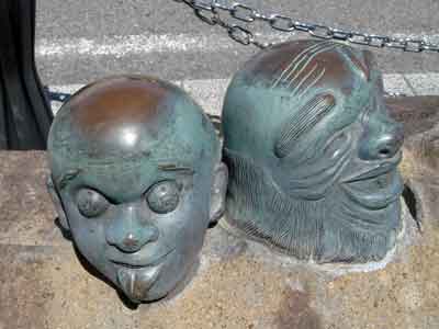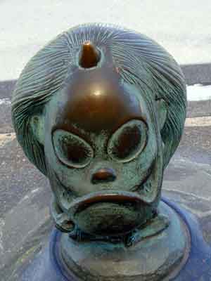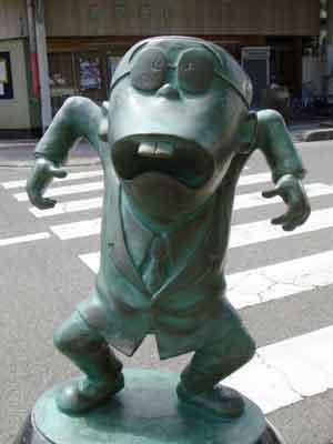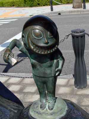 境港駅から水木しげる記念館まで、まっすぐ続く水木しげるロードの両側に展示されている作品の数々です。