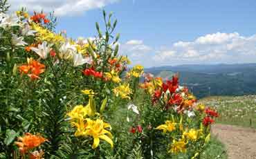 頂上まで来ると下界を見下ろす景色の素晴らしい事、真っ青な空とゆりのコントラストに目を奪われます。