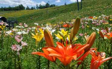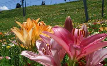 色鮮やかなゆりがいっぱいです。今年は例年よりも1週間開花が遅れたとか、丁度良いときに訪れたようです。